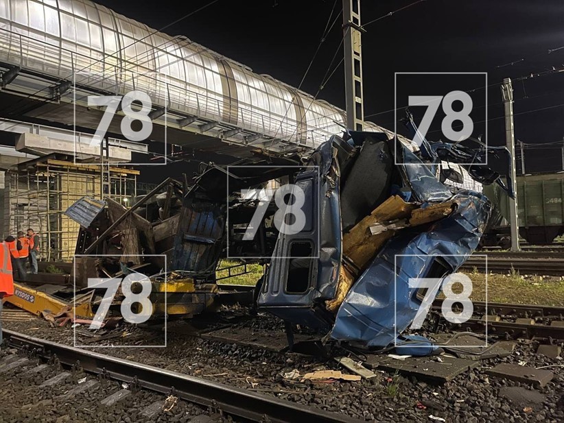 Об инциденте на железнодорожной станции Мга стало известно утром 4 октября. По предварительным данным, водитель грузовика выехал на пути в аккурат перед приближающимся составом.