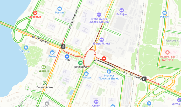Движение затруднено в районе Остужевского кольца