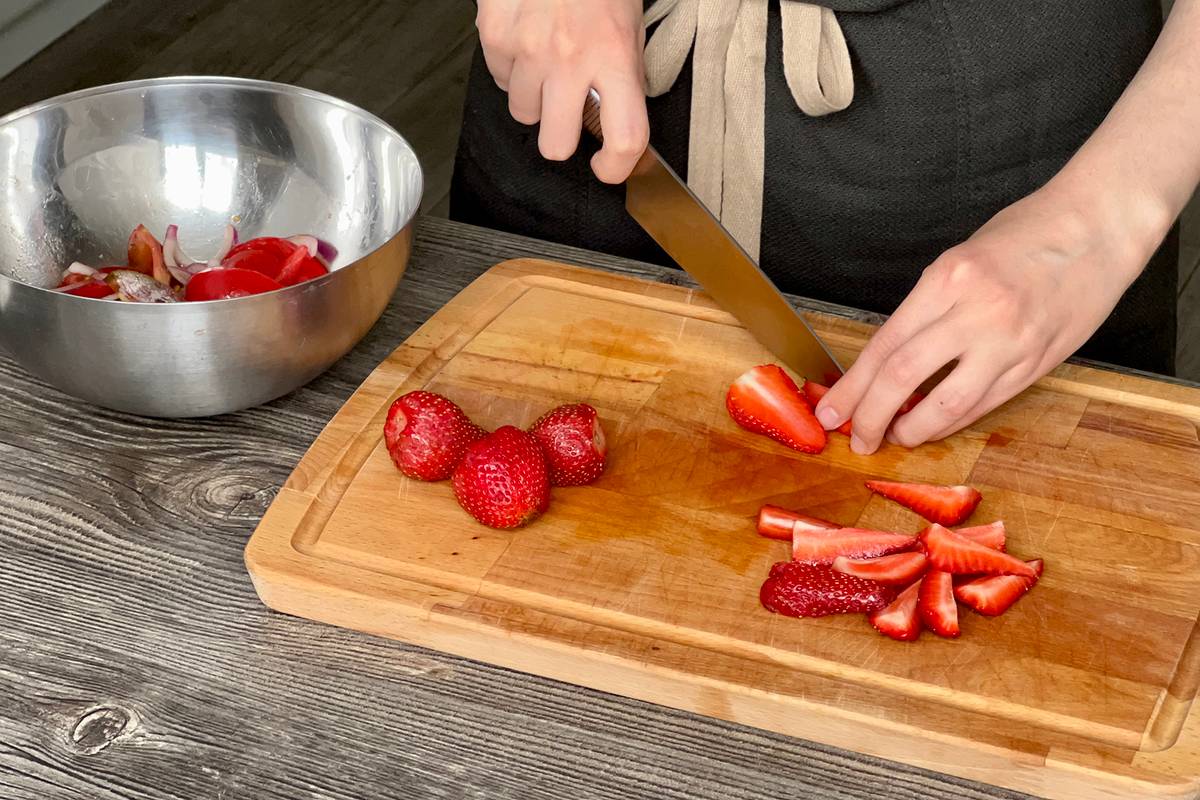 Пошаговый способ приготовления салата с клубникой и томатами