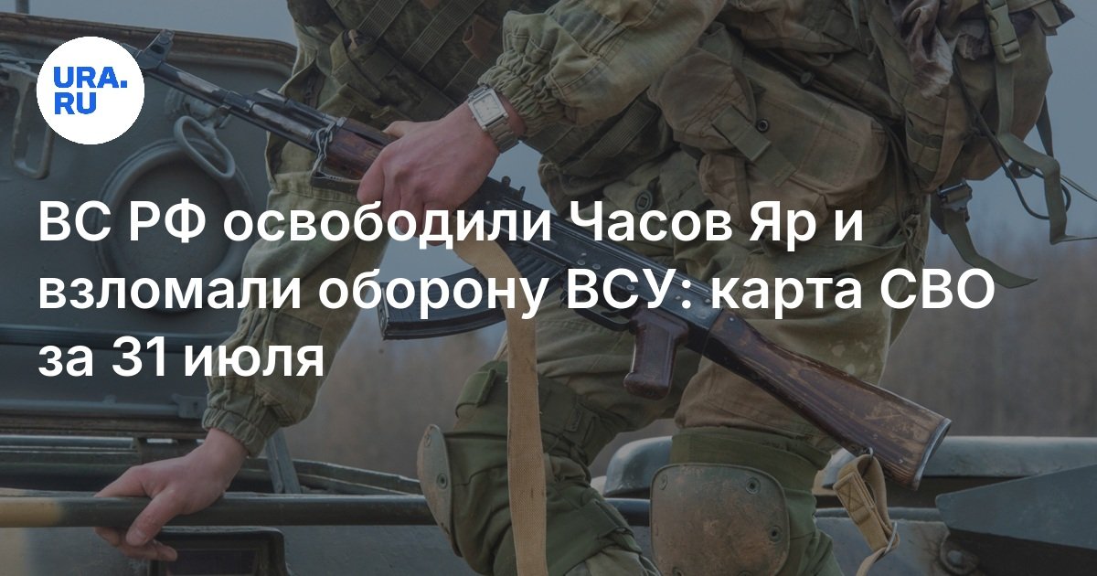 Российские войска завершили операцию по установлению контроля над Часовым Яром. Это, по словам командира спецназа «Ахмат» Апти Алаудинова, создало условия для дальнейшего наступления и позволило прорвать оборону ВСУ. Одновременно украинские силы продолжают подготовку к возможной высадке в Херсонской области, концентрируя войска у Тендровской и Кинбурнской кос. Карта спецоперации на 31 июля — в материале URA.RU.