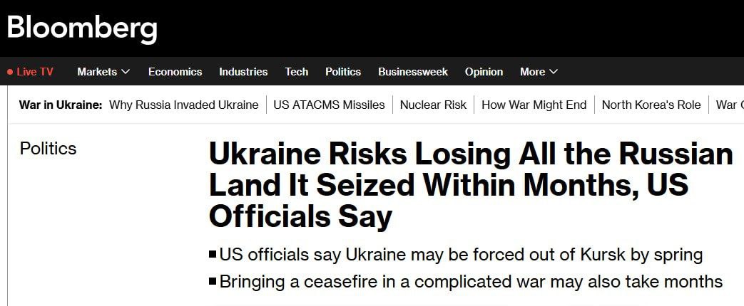 По их словам, при более согласованных усилиях Москвы по вытеснению украинских войск из Курского региона, ожидающихся уже в январе, ВСУ смогут удерживать территорию лишь до весны, после чего им придется отступить – или они рискуют оказаться в окружении.