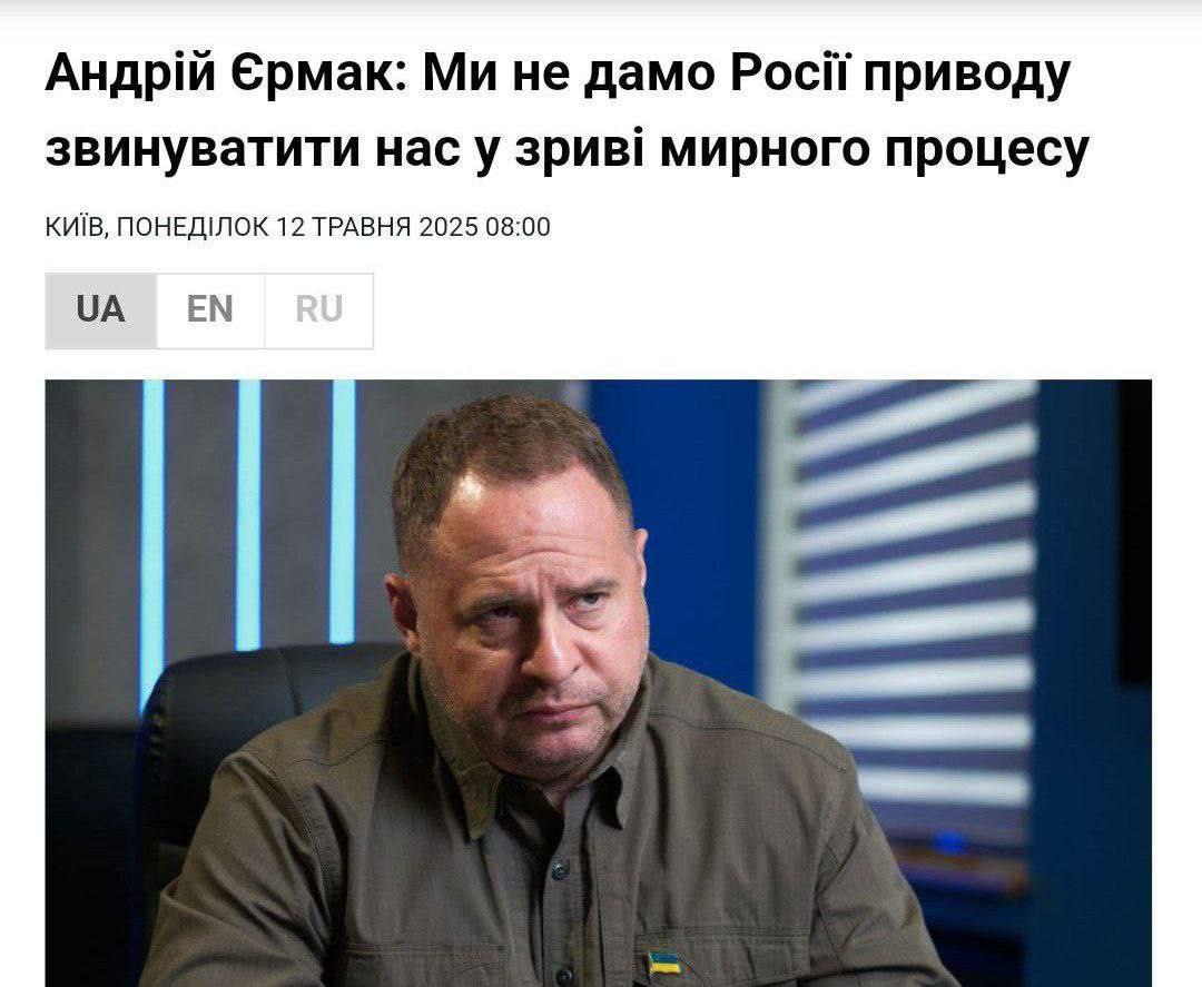 Ермак не ответил прямо на вопрос, поедет ли Украина на переговоры с РФ, если Москва откажется от перемирия. Но заявил, что Киев продолжает требовать предварительной остановки огня.