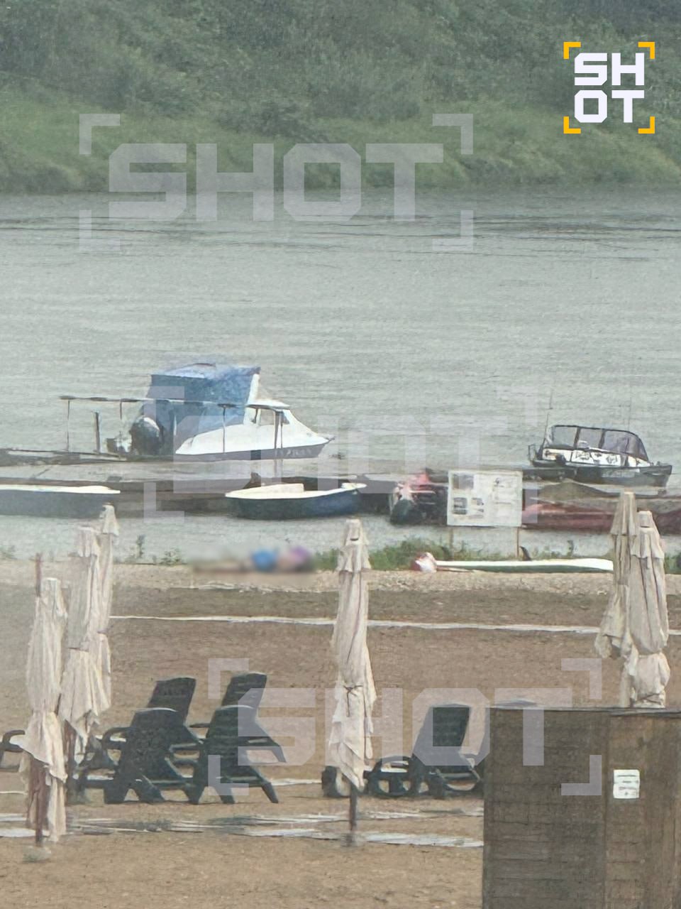 Первое фото с пляжа парк-отеля «Шахтер» в Тульской области, где молния убила трёх человек. Как рассказали SHOT очевидцы, несколько погибших в этот момент были в воде, женщина — на берегу.