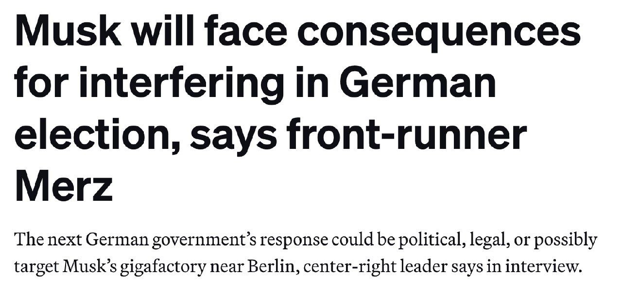 "Маск столкнется с последствиями за вмешательство в выборы в Германии, говорит лидирующий кандидат Мерц