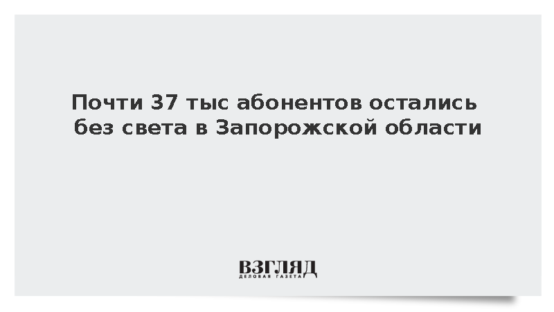 Как писала газета ВЗГЛЯД, накануне отключение произошло в ряде других районов Запорожской области, включая Васильевский, Каменско-Днепровский, Веселовский, Токмакский муниципальные округа и часть Энергодара.
