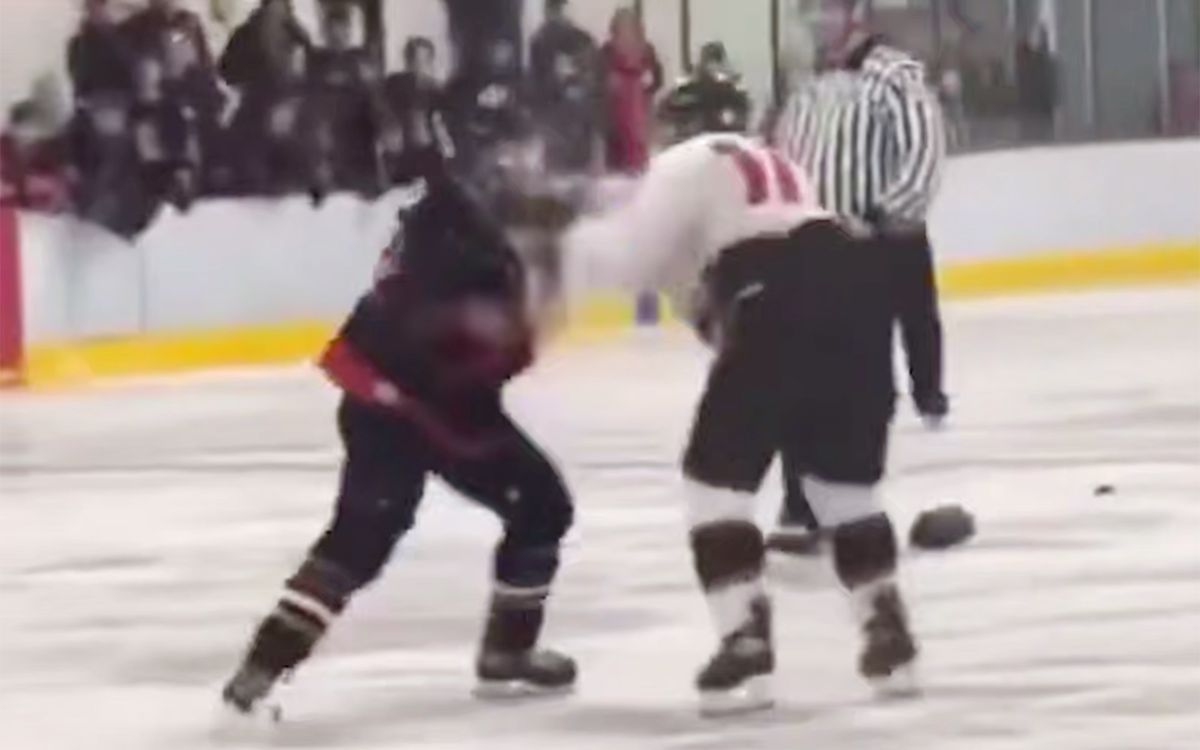 Два хоккеиста-любителя устроили драку во время предрождественского матча в Саскачеване (Канада).