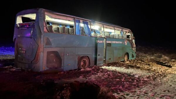 АСТАНА, 16 янв - Sputnik. 16 января примерно в 01:03 произошло ДТП с участием пассажирского автобуса на 383-м километре автодороги KZ-11 "Доссор – Кульсары – Бейнеу – Сайотес – Шетпе – Жетыбай – Актау".