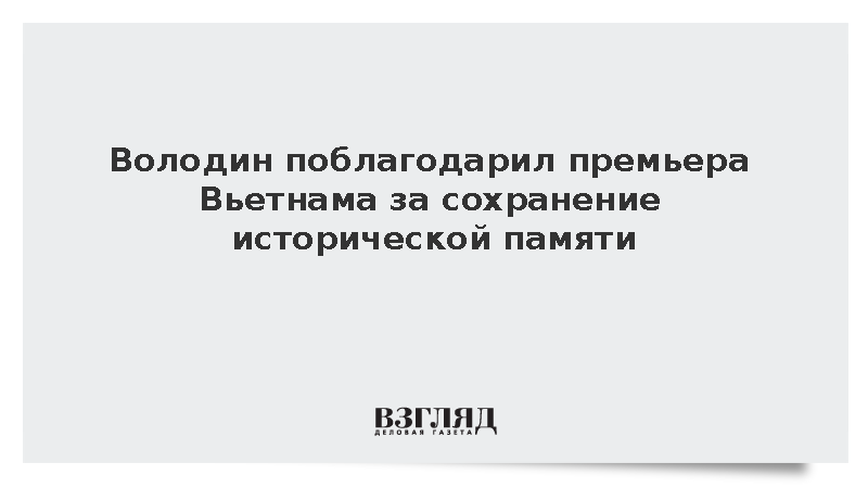 Володин выразил благодарность Вьетнаму за усилия по сохранению исторической памяти во время встречи с премьер-министром республики Фам Минь Тинем, передает РИА «Новости».
