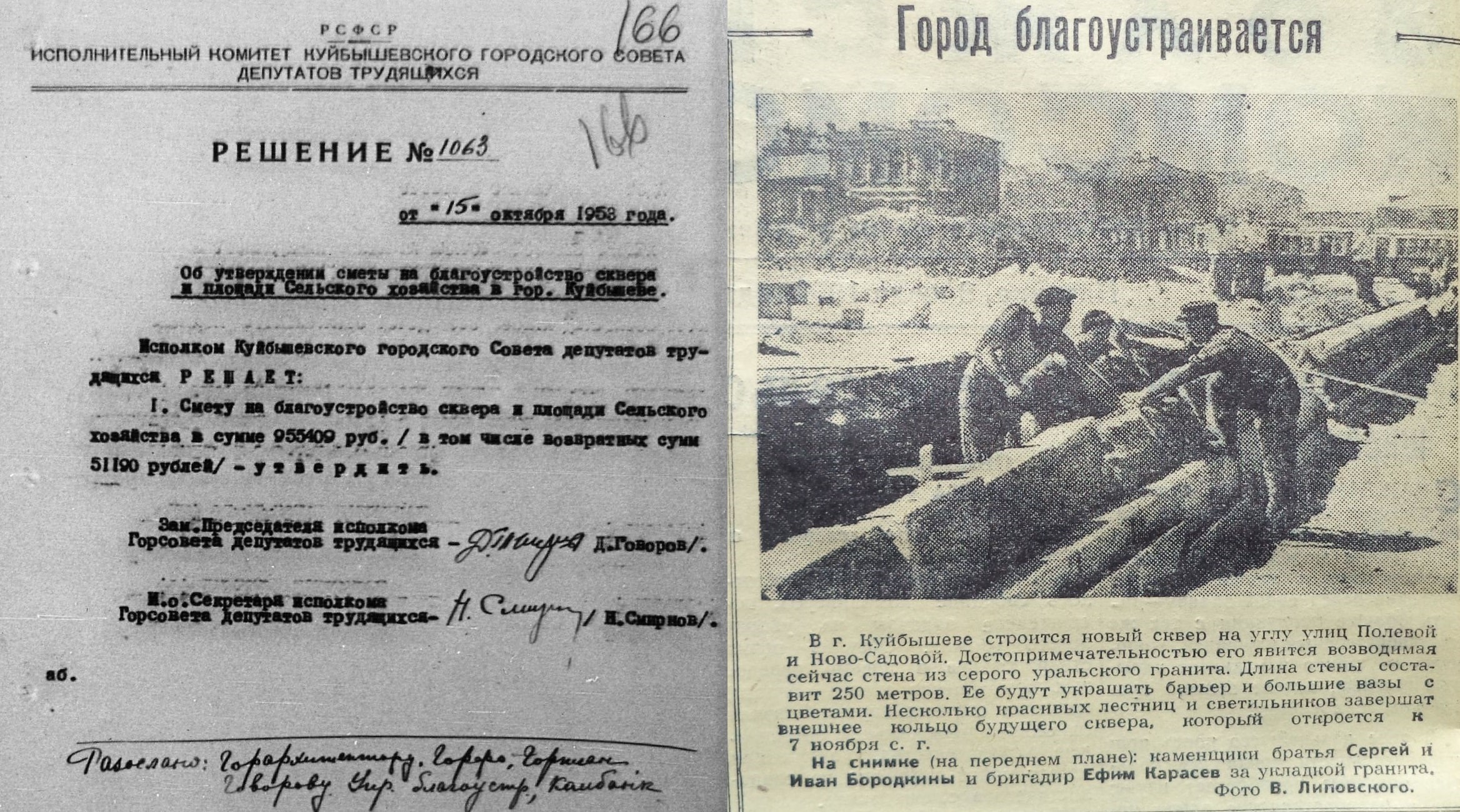 В 1953 году куйбышевские архитекторы разработали проект благоустройства площади Сельского хозяйства, в том числе разбивки там сквера.
