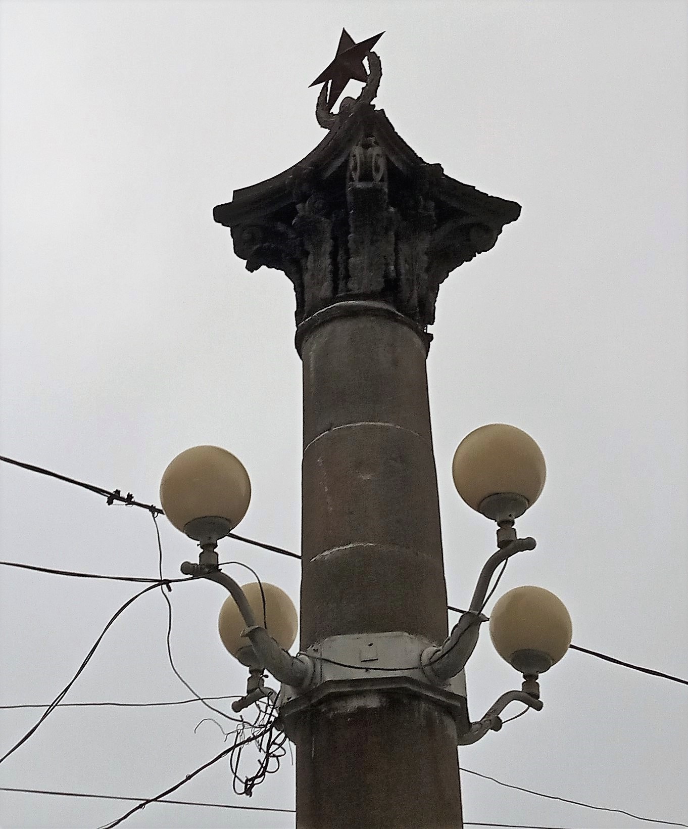 Вход на площадь со стороны Полевой украсили две колонны, служащие опорами для фонарей. Одну из них недавно демонтировали, но обещали вернуть на место.