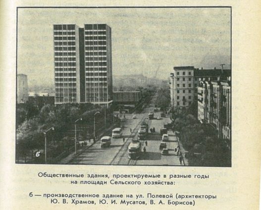 При всем при этом оставался еще один лакомый кусок – участок между Домом сельского хозяйства и улицей Полевой. На него еще с 1950 года претендовал уже упомянутый нами ГПЗ 4. В 1956 году Петром Щербачевым разрабатывался проект постройки семиэтажного(!) жилого дома для его работников.