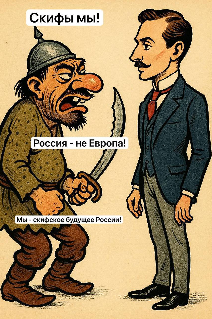 По сути, аргументация красноскифов часто базируется на стихе Блока "да, скифы - мы с раскосыми и жадными очами". Но этногенез, антропология и история - это вотчина серьезных ученых, а не поэтов.
