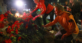 Глубокой ночью многие сочувствующие Евгению Пригожину и его ЧВК «Вагнер» приносят цветы и свечи к зданию на Зольной улице в Петербурге, где еще недавно кабинеты занимали его сторонники.