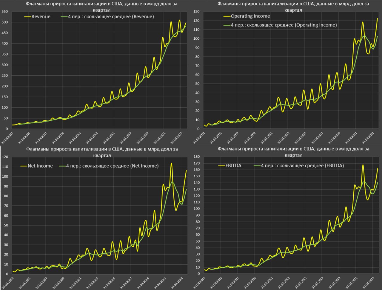 Прежде чем рассуждать о пузыре, представлю финансовые показатели по 3кв23, т.е. за последний квартал еще не все компании представили результаты. Действительно ли там так все хорошо?