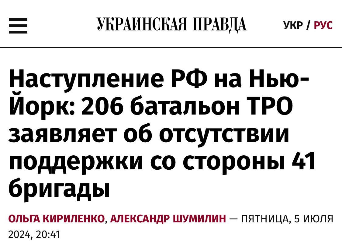 Украинские военные обвинили друг друга в отсутствии поддержки в районе наступления ВС РФ на Новгородское (Нью-Йорк).