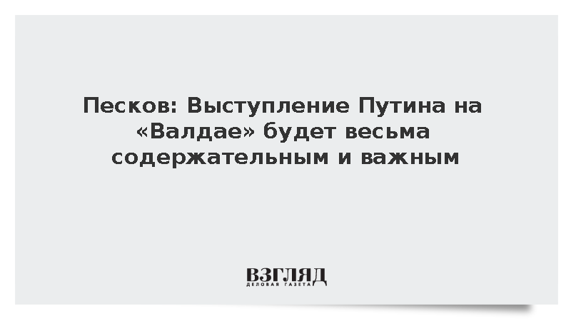 Речь президента Владимира Путина на форуме «Валдай» будет весьма содержательной, его выступления на данном мероприятии каждый раз становятся событиями мирового масштаба, сообщил пресс-секретарь главы государства Дмитрий Песков.