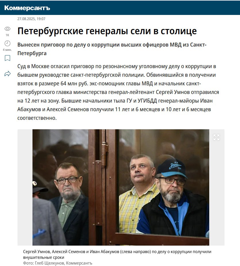 ➖Сергей Умнов, экс-начальник ГУ МВД по Петербургу и Ленобласти, бывший помощник министра — 12 лет строгого режима, штраф ₽35 млн.