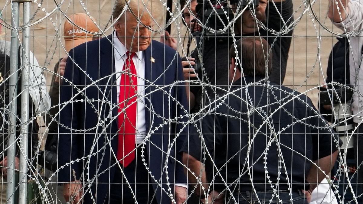Former President Donald Trump gave a wave to migrants through a barbed wire fence at the US-Mexico border during a visit with Texas Governor Greg Abbott.