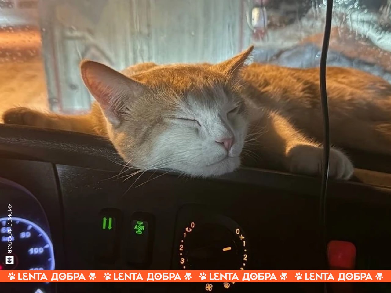 Хвостатый путешественник по кличке Кокос стал напарником жителя Липецка в марте 2023 года. Мужчина нашёл его ещё совсем котёнком на одной из заправок на Урале. Кокос был худой, голодный и очень грязный.Дальнобойщик не оставил малыша в беде и забрал с собой. Так и началось их сотрудничество.
