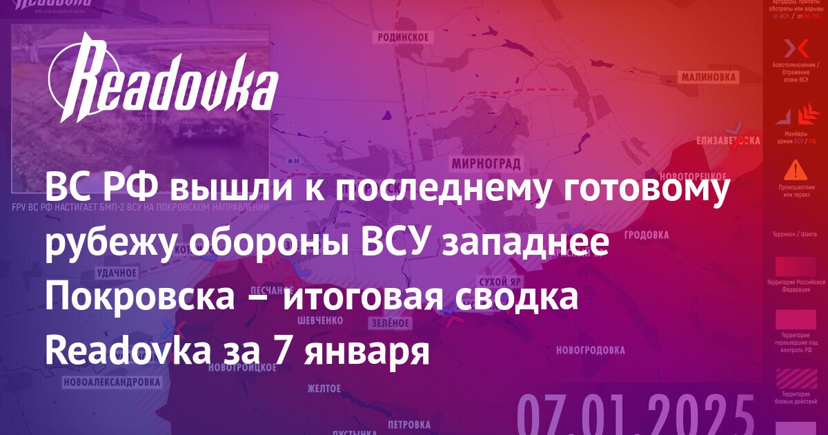 ВС РФ вышли к последнему готовому рубежу обороны ВСУ западнее Покровска — итоговая сводка Readovka за 7 января