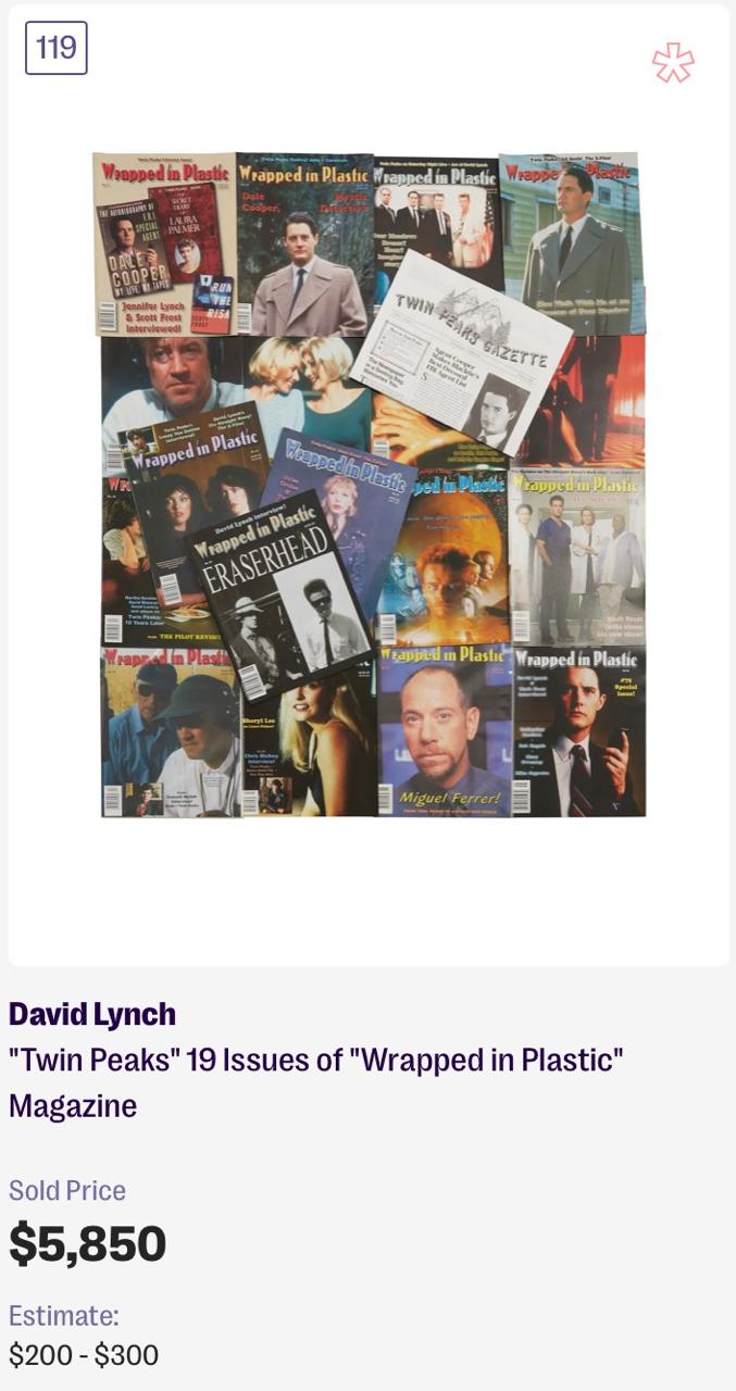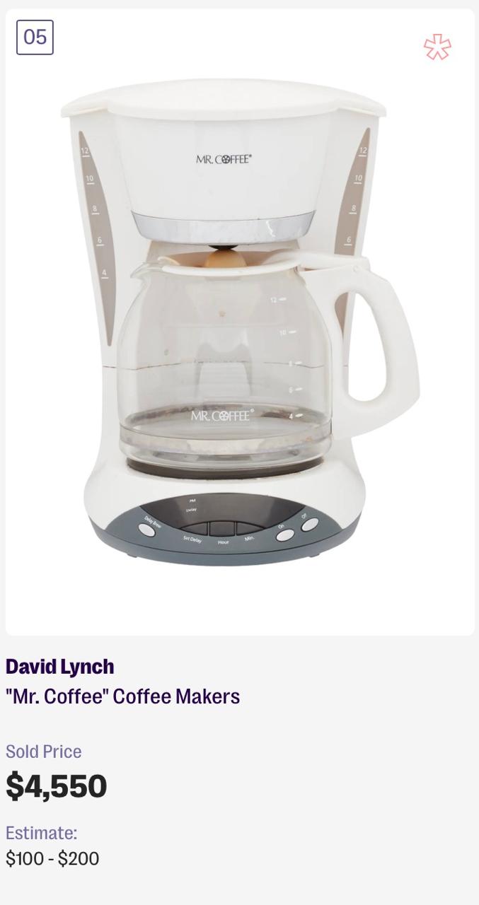 Выставленная на аукцион коллекция включала сценарии, музыкальные инструменты, книги, мебель из дома режиссера, памятные вещи, связанные с проектами Линча, и даже кухонную утварь, в том числе несколько кофемашин и кружек.