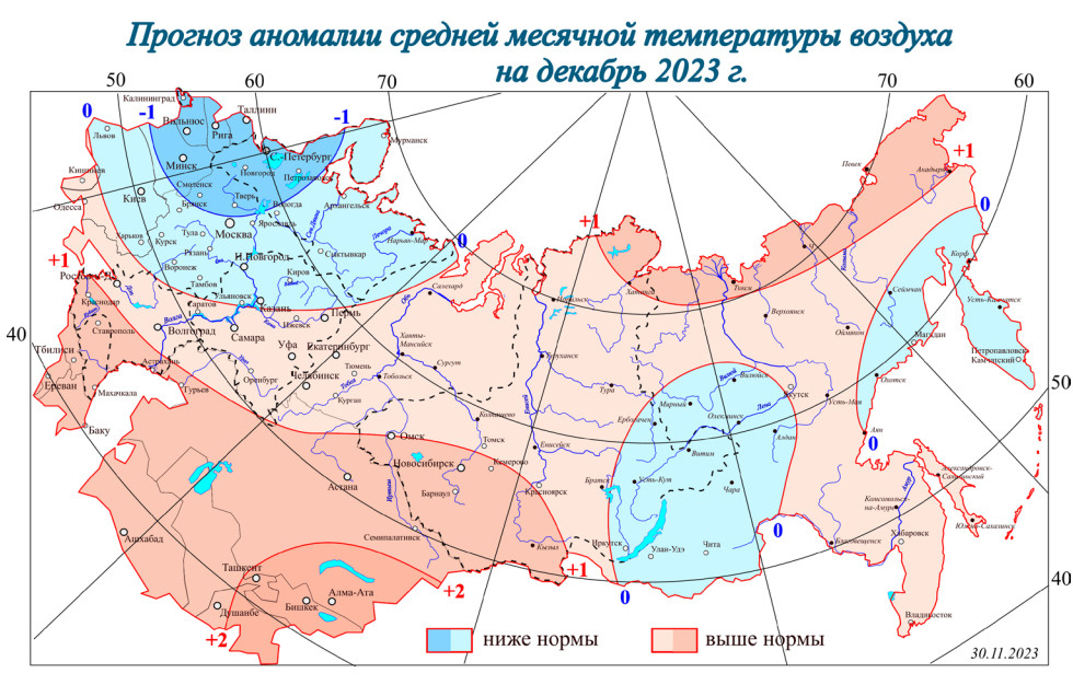 Научный руководитель Росгидромета Роман Вильфанд ранее отмечал, что в среднем декабрь обещает быть чуть теплее, чем обычно, но погода будет постоянно меняться — от оттепелей до заморозков. По словам климатолога Андрея Киселева, тенденция к потеплению продолжается несколько десятилетий по всему миру, однако в России температура повышается почти втрое интенсивнее, чем в целом по Земле.