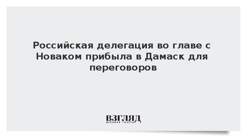 Высокопоставленная российская делегация во главе с вице-премьером Александром Новаком прибыла в Дамаск, передает ТАСС. Приезд делегации был освещен сирийским государственным телеканалом Al Ikhbariya.