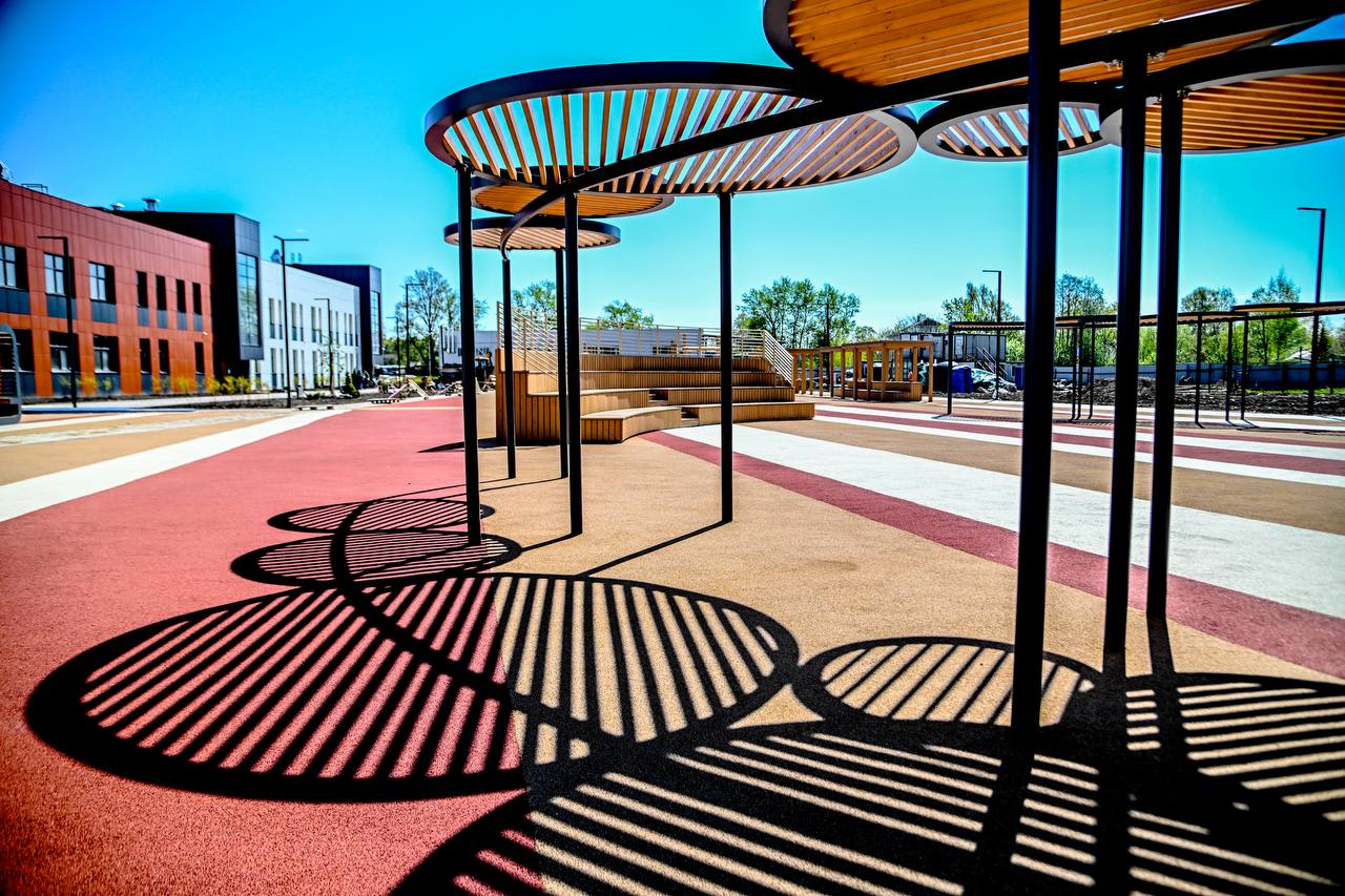💬«На стройке — финишный рывок. Маляры закатывают последние стены, электрики — в потолке подключают будущие «солнышки» и «самолётики» — светильники для младших классов. Монтажники аккуратно расставляют интерактивные панели: вместо доски — большой экран, на котором можно развернуть атом или человеческое сердце в 3D. Во дворе — рабочие раскатывают «умное» покрытие. Проверяют упругость: по такому удобно бегать и малышам, и школьной сборной по футболу. В основе —типовой проект, но над ним серьёзно поработали архитекторы и дизайнеры…Интересные решения в отделке, тематические зоны, нестандартное освещение — всё это делает школу особенной. Для микрорайона Аэродром, где активно растёт население и обновляется среда, такой центр притяжения особенно важен — это часть гармоничного городского пространства, в котором должно быть комфортно расти, учиться, мечтать и становиться личностью».