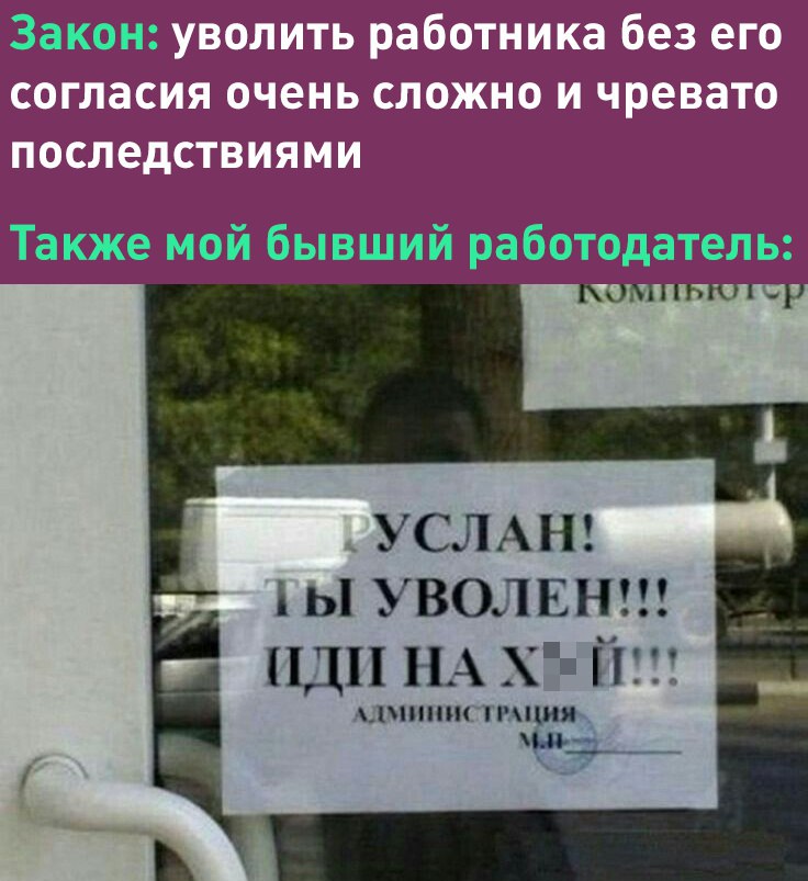 А чтобы такого не было, почитайте в каких 5 случаях работодатель может уволить сотрудника без его согласия: https://news.lenta.ch/9mW3zQ