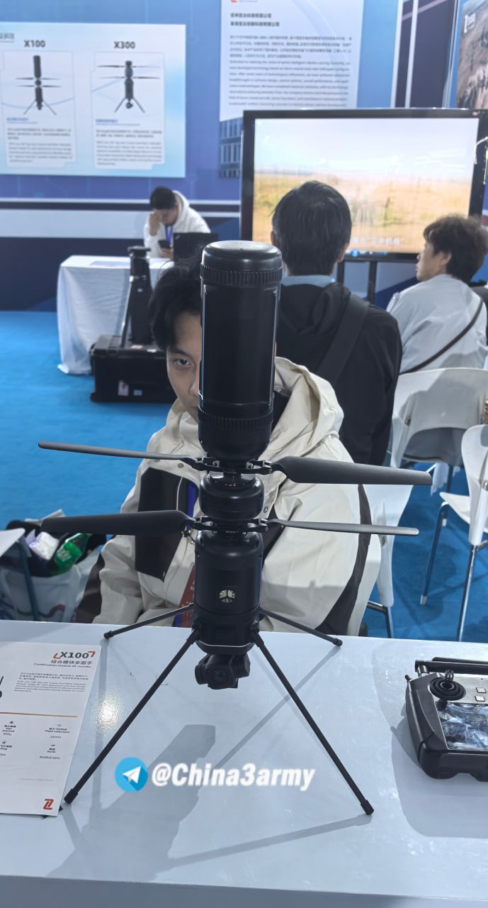 Еще одна разработка от Китая. Компоновка дрона — соосная двухроторная. Имеет модульную конструкцию, быстро приводится в рабочее состояние, легко складывается для переноски. Корпус оснащён быстросъёмными поворотными фиксаторами, позволяющими разбирать X100 без инструментов. Поддерживается установка двух боковых учебных модулей.