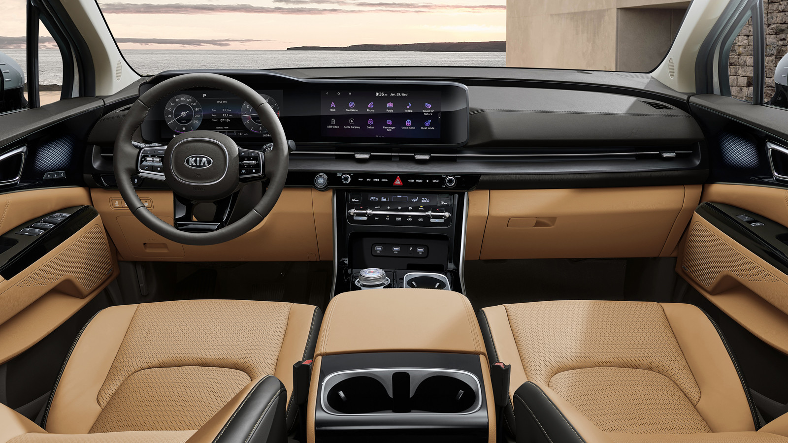 Kia Carnival построен на платформе третьего поколения N3, которая была впервые применена на восьмой Hyundai Sonata. Её также используют такие модели, как Santa Fe, Tucson, Kia K5, Sportage и Sorento последних поколений. В интерьере ожидается появление новой мультимедийной системы с парой 12-дюймовых экранов. Что же касается двигателей, то на домашнем рынке в Корее Carnival оснащается бензиновым мотором V6 3.5 GDI с комбинированным впрыском (294 л.с., 355 Нм) и дизелем 2.2 мощностью 202 л.с. (441 Нм). Рестайлинговая модель может получить гибридную версию с бензиновым турбированным 1.6 и электромотором общей мощностью 227 л.с. и 350 Нм крутящего момента. Моторы комплектуются 8-ступенчатой автоматической трансмиссией, привод – только передний.