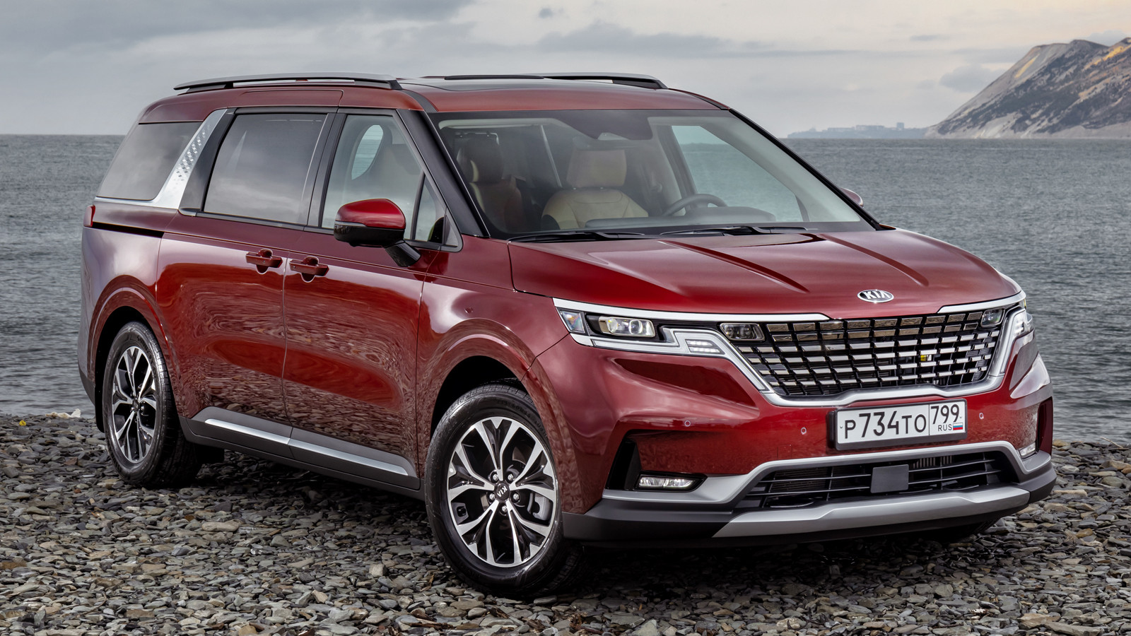На опубликованных сегодня фотографиях Карнивал запечатлён без камуфляжа, поэтому можно разглядеть все датели рестайлинговой модели. Как и ожидалось, минивэн получит полностью новую переднюю часть в стиле обновлённого Sorento. Здесь появятся вертикальные фары с Г-образными светодиодными полосками габаритных огней, заходящими на решётку радиатора. Бампер сделают более простым по дизайну, на нём выделяется разве что контрастная горизонтальная накладка в нижней части. Передние крылья и капот при этом останутся прежними, равно как и боковины кузова. Сзади же произойдут не менее радикальные изменения: появятся новые фонари с вертикальными блоками, полностью новая крышка багажника с более широким проёмом и расположенной в её нижней части нишей номерного знака, а также новый бампер. Кроме того, минивэн изображён с колёсными дисками нового дизайна.
