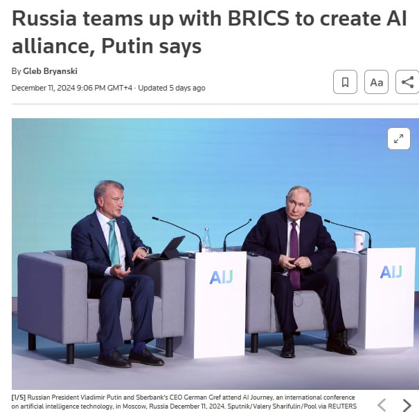 Вот, к примеру, Reuters пишет, что это ведет к обострению технологической гонки с США: на данный момент Россия в сотрудничестве с Китаем и другими странами БРИКС демонстрирует серьезные шансы на укрепление своих позиций в сфере ИИ. И такие выводы делают многие западные СМИ. В странах БРИКС издания указали на значимость Международного альянса в сфере искусственного интеллекта.
