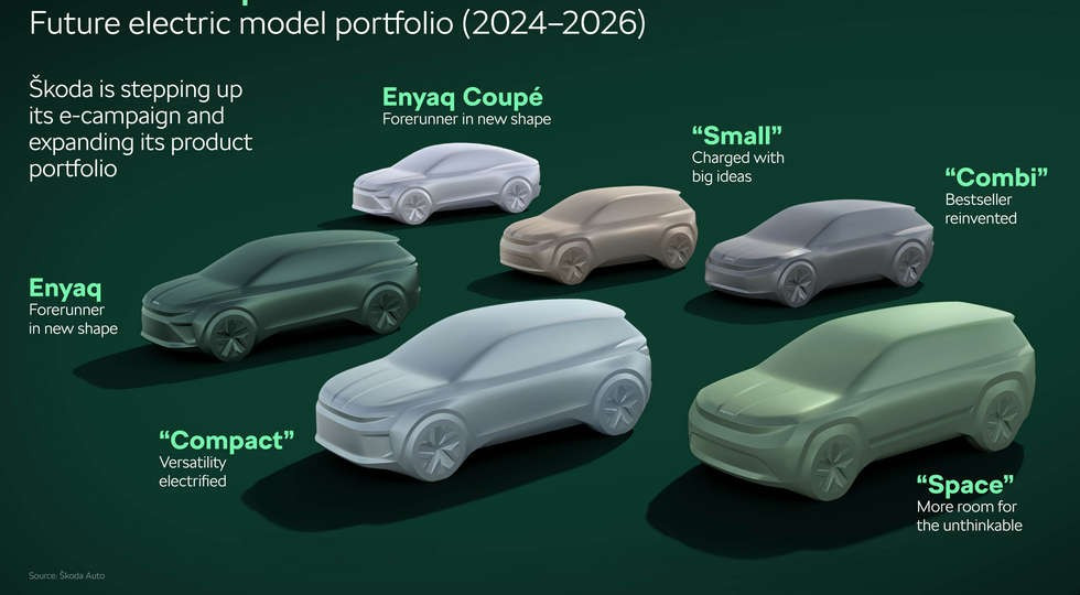 Согласно плану Skoda, к 2026 году в линейке бренда будет шесть полностью электрических моделей. К 2027-му совокупный объём инвестиций в «зелень» в общей сложности должен добраться до отметки 5,6 млрд евро. В апреле прошлого года чешский производитель презентовал график появления новинок: на 2024-й намечен дебют компактного электрического паркетника с рабочим названием Compact.