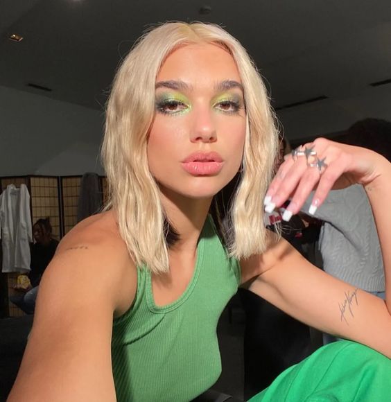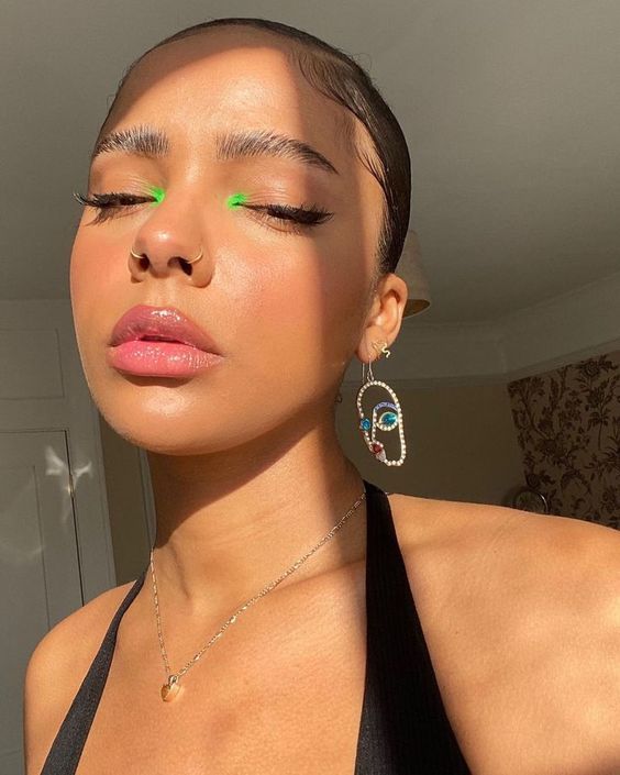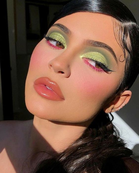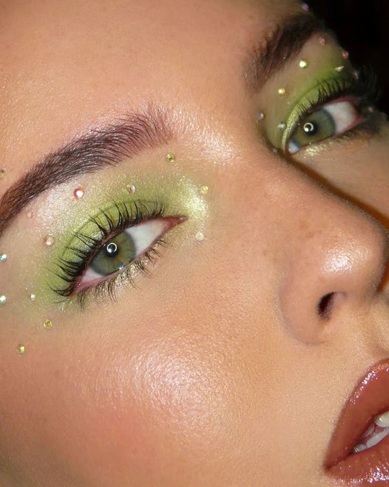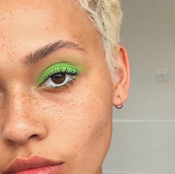 Кстати, если ты не готова покрывать все веко салатовыми тенями, сделай небольшую стрелку. Она все равно будет выделяться и придаст макияжу свежесть. А референсы ищи ниже.