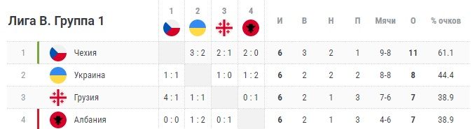 Эта группа получилась достаточно ровной. До последнего тура было непонятно, кто какое место займёт. В итоге чехи всё-таки опередили всех остальных и вернулись в элитный дивизион. Стартовавшие с двух побед грузины оказались только на третьем месте. Теперь их ждут стыковые матчи за право остаться в Лиге В.