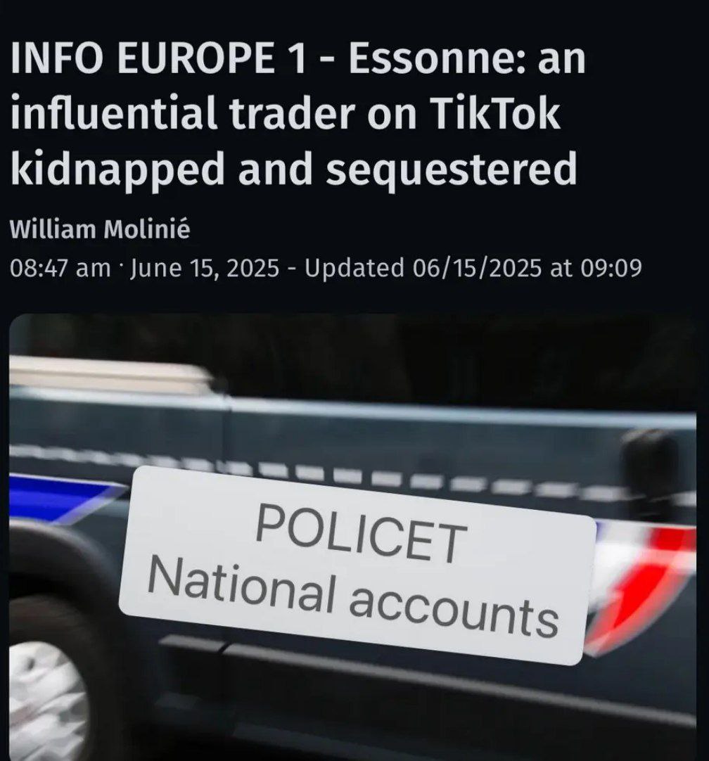 26-летнего криптотрейдера с TikTok из Франции с 40 000 подписчиками похитили, когда он возвращался домой в Жювизи-сюр-Орж на севере страны.