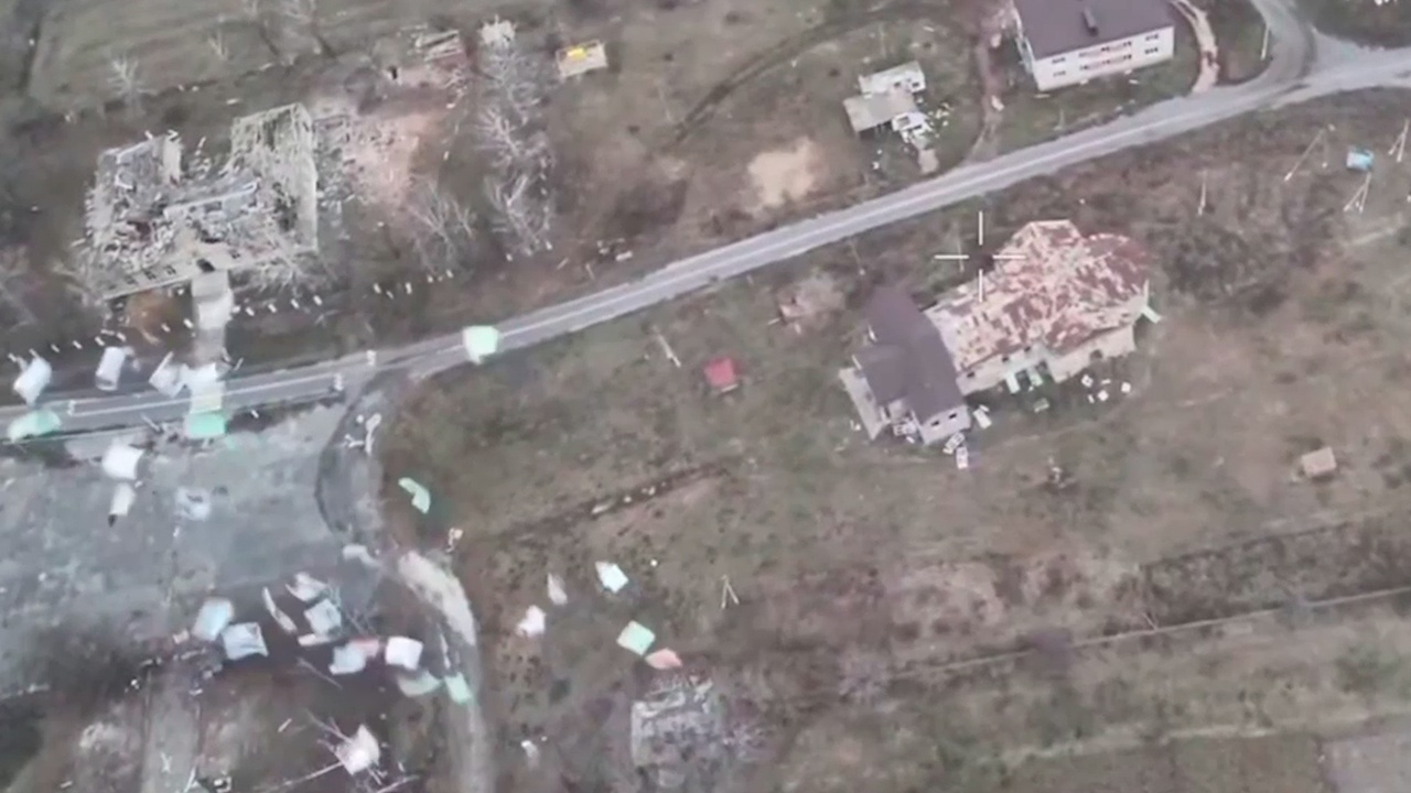 На них показано, как российские военнослужащие сворачивают пачку листовок в рулон, прикрепляют ее к квадрокоптеру, запускают его в небо и сбрасывают «груз» в определенном месте, там, где находится скопление боевиков.