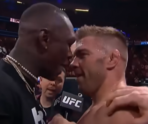 Подтверждением этому послужила скороспелая битва взглядов бойцов — Адесанья, присутствовавший на шоу в Лас-Вегасе (США), вышел в клетку к победителю и успел не только пересечься с ним лицом к лицу, но и пообщаться на повышенных тонах.