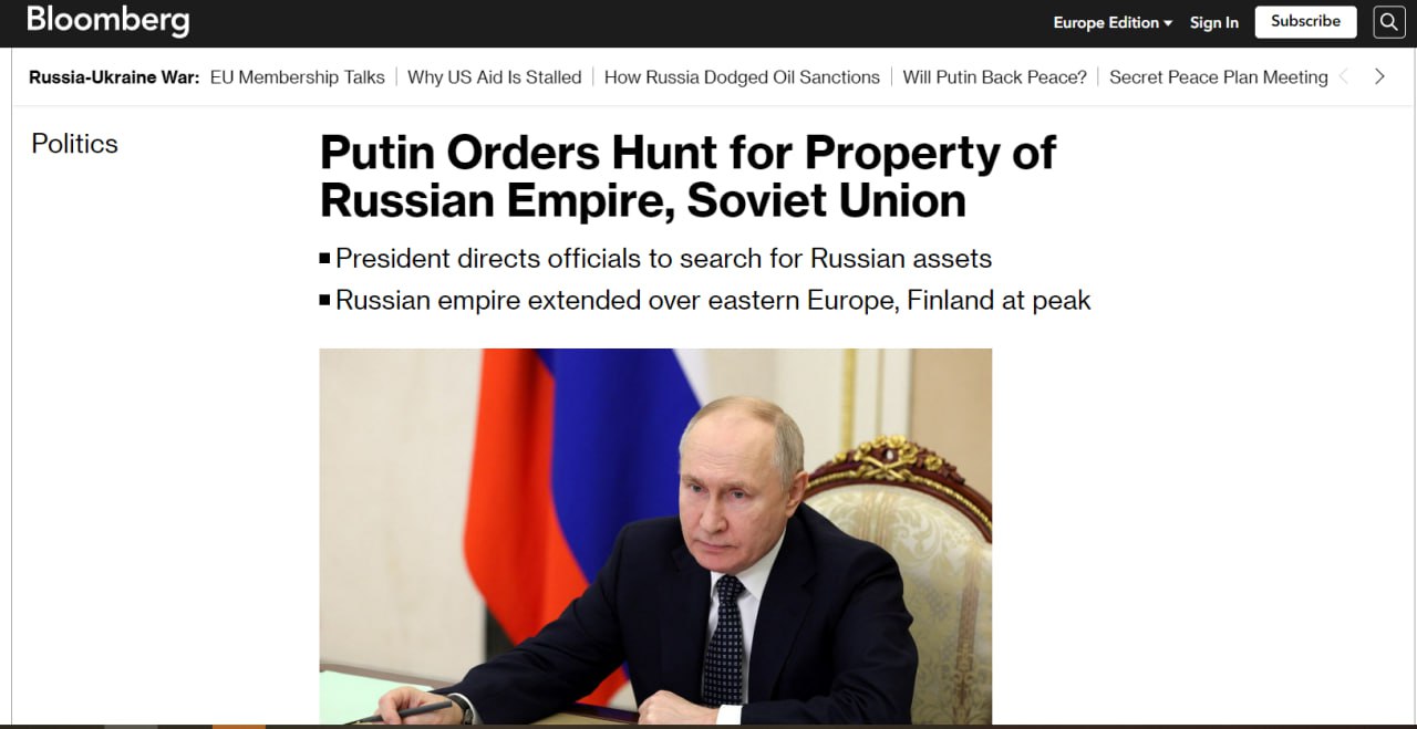 ❗️Bloomberg: Путин поручил чиновникам искать российские активы