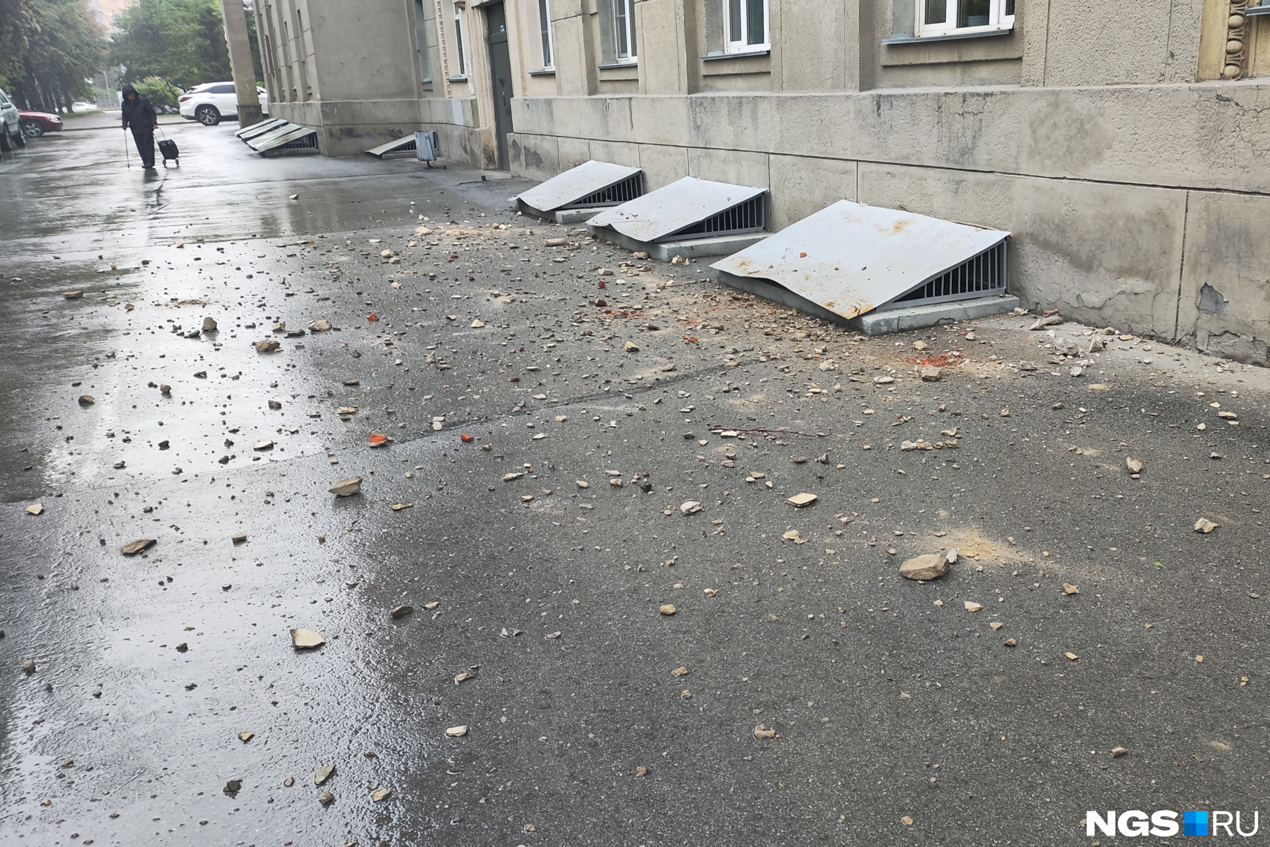 Утром 29 июня у Стоквартирного дома в Новосибирске обрушился фасад. Куски отделки упали на тротуар у дома.