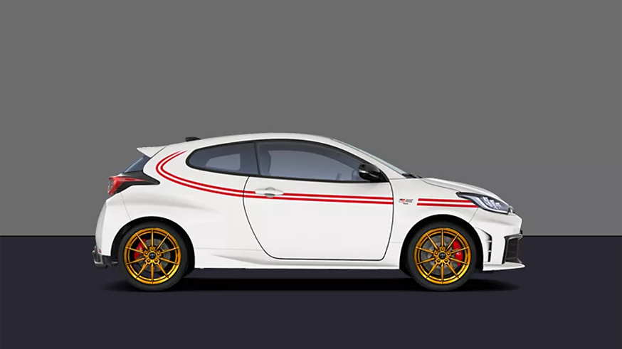 Винтажная ливрея спецверсии Toyota GR Yaris является отсылкой к раллийному классическому Corolla Coupe, который принёс Тойоте первую победу в WRC в 1973 году. У лимитированного хэтчбека есть красные наклейки на белом кузове и эмблема TGR Italy на боковине. В салоне тоже есть табличка с указанием на номер каждого автомобиля лимитированной серии.