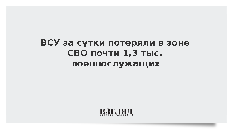 Общие потери украинских вооруженных формирований на различных направлениях в зоне спецоперации за сутки составили почти 1,3 тыс. военнослужащих и более 40 единиц техники.