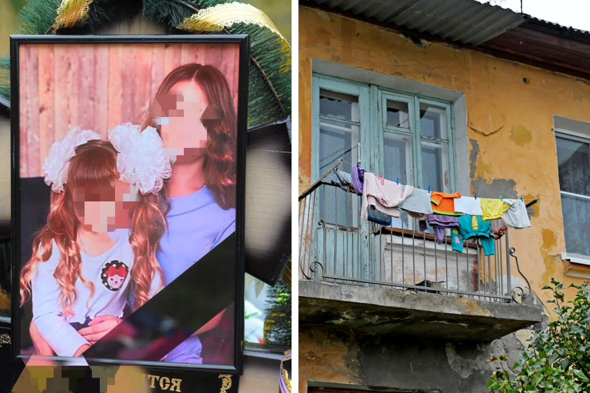 Слева — фотография мамы с дочкой на свежей могиле. Справа — это балкон квартиры, в которой произошло убийство. Там все еще сушатся детские вещи
