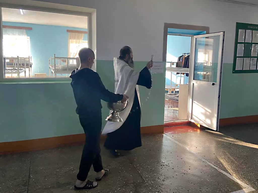 В присутствии сотрудников УФСИН отец Дмитрий провел чин великого водосвятия. Также он обошел и окропил святой водой помещения всех служб следственного изолятора, расположение отряда по хозяйственному обслуживанию и камеры, в которых содержатся несовершеннолетние.