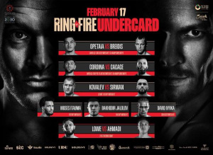 - Джей Опетая (24-0, 19 КО) vs Майрис Бриедис (28-2, 20 ) / за вакантный титул чемпиона мира по версии IBF в крузервейте (до 90,7 кг);