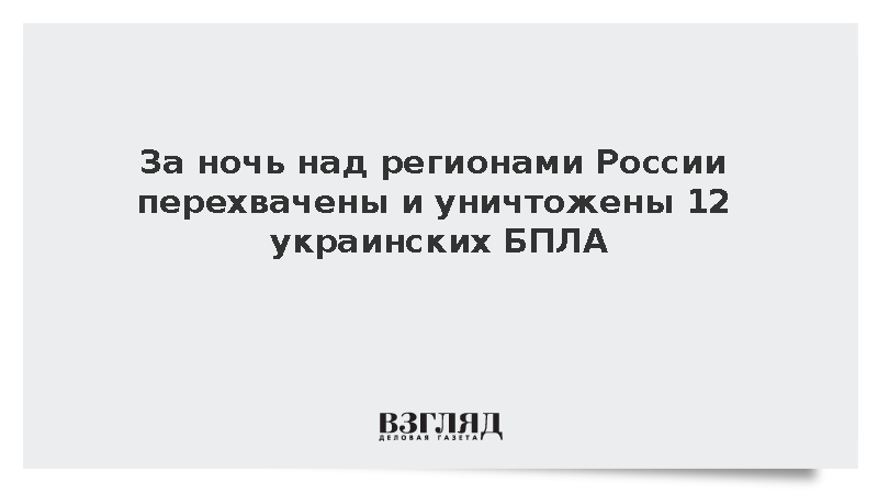 За ночь над регионами России перехвачены и уничтожены 12 украинских БПЛА