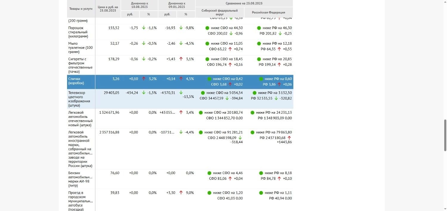 За август сильнее всего подорожали спички — на 3,2%, и теперь они стоят 3,26 рублей за коробок. Среди продуктов, которые подорожали в течение августа, оказались: