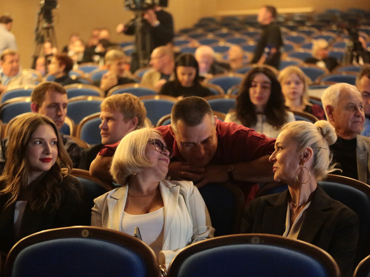 Праздничное настроение царило уже в фойе: актеры, режиссеры и сотрудники театра радовались встрече после летнего перерыва. Через двадцать минут зал был уже почти полностью заполнен.