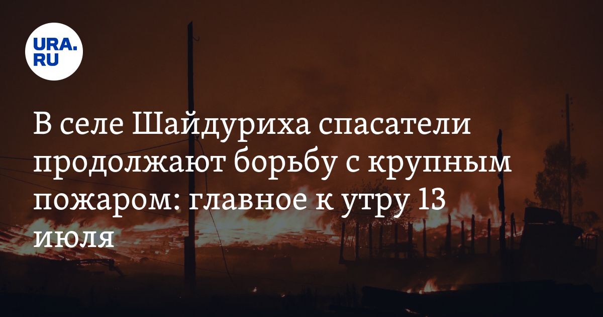 В селе Шайдуриха Невьянского городского округа Свердловской области спасатели МЧС и добровольцы продолжают ликвидацию крупного пожара. URA.RU приводит главные новости к утру 13 июля.